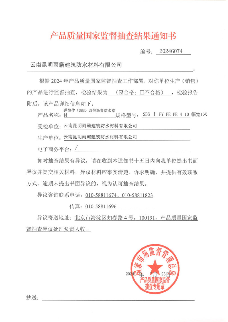 【喜報】雨霸防水卷材,通過國家市場監督管理總局的權威抽檢